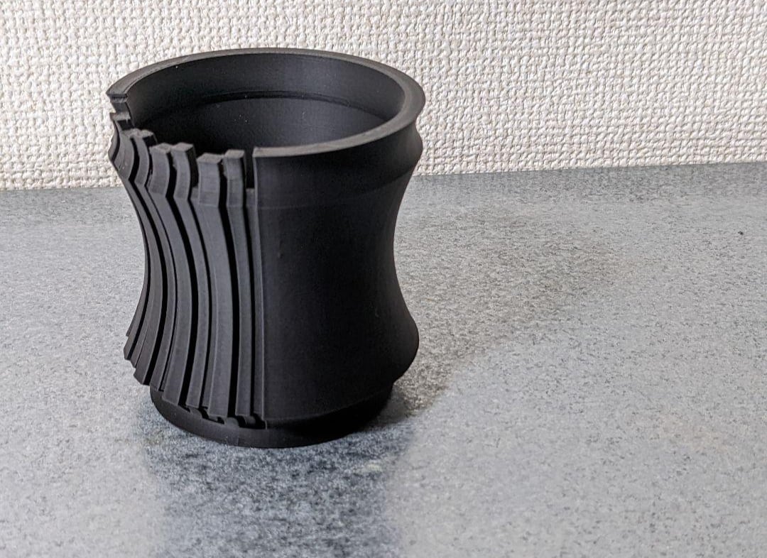 限定的に露出した起伏のある表面がアクセントの筒型の鉢です。