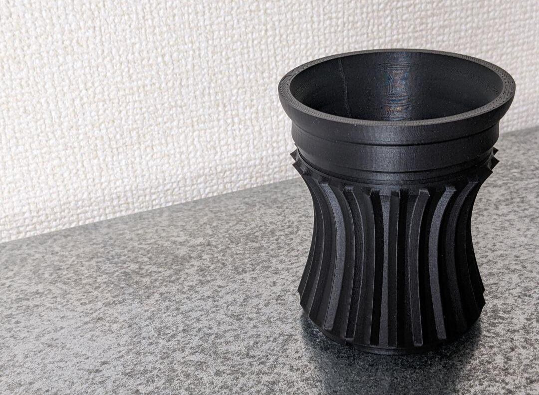 強めの絞りと縦のラインが洗練された雰囲気のある筒型の鉢です。