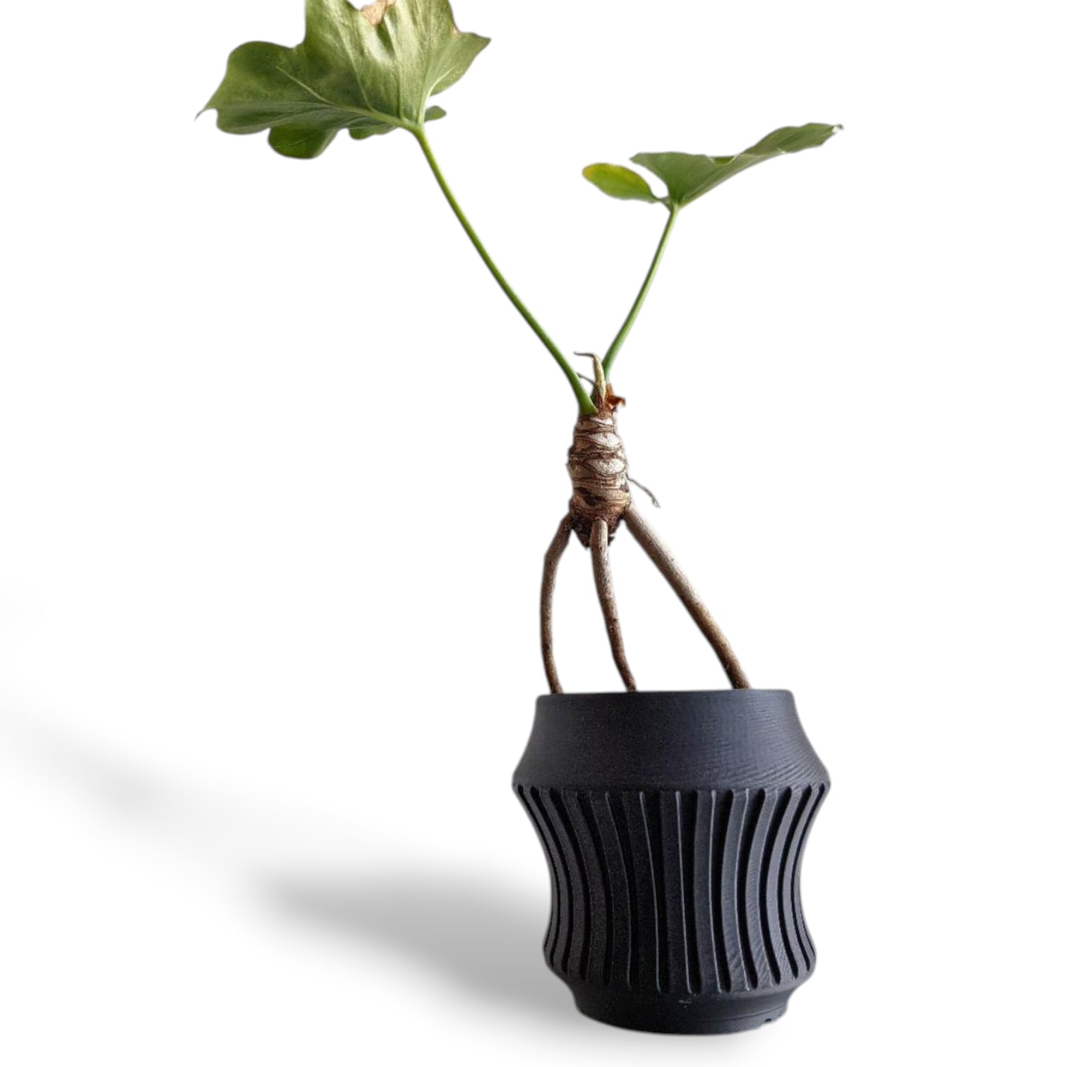 鎬模様と絞りが特徴。低重心で幅広い植物とあわせやすい鉢です。