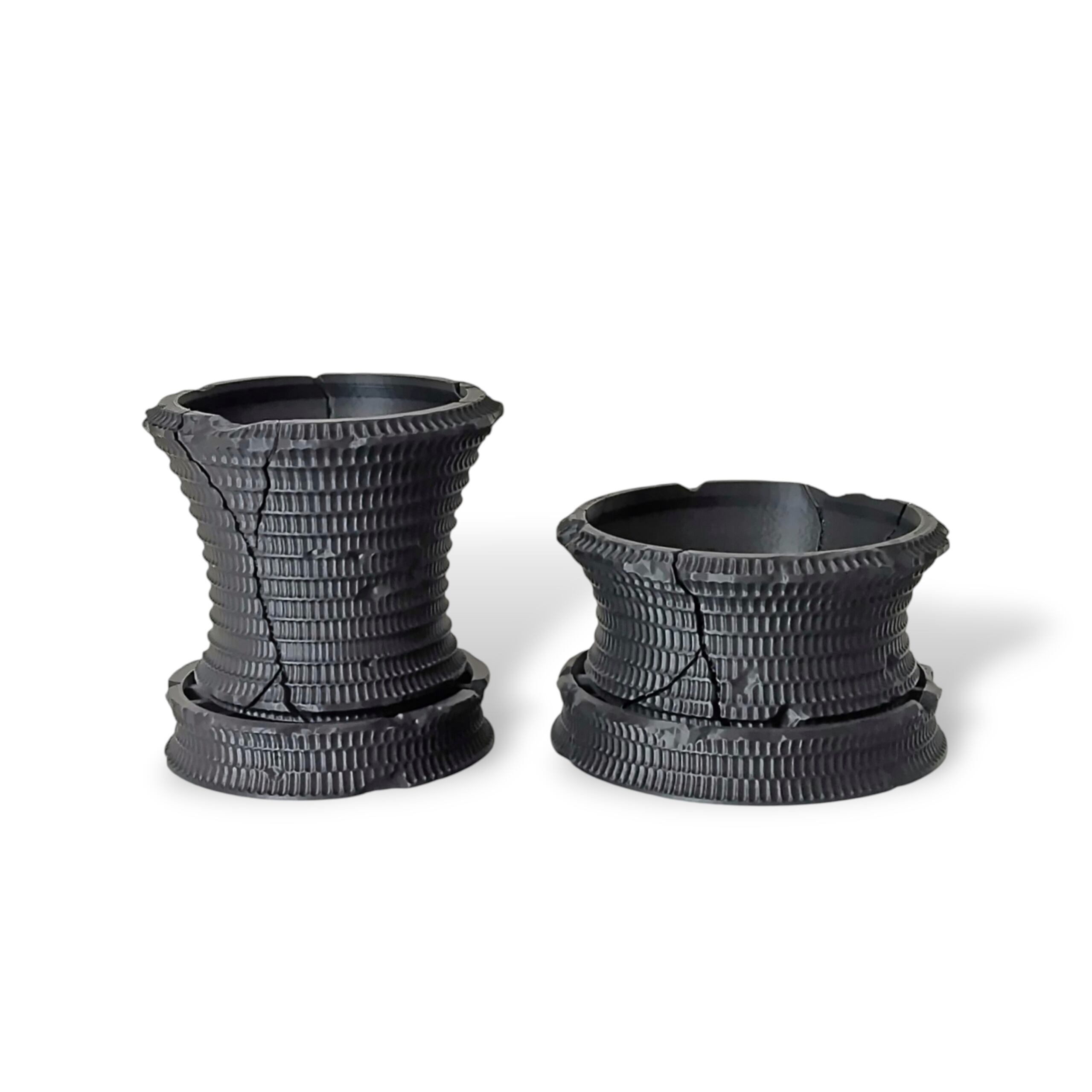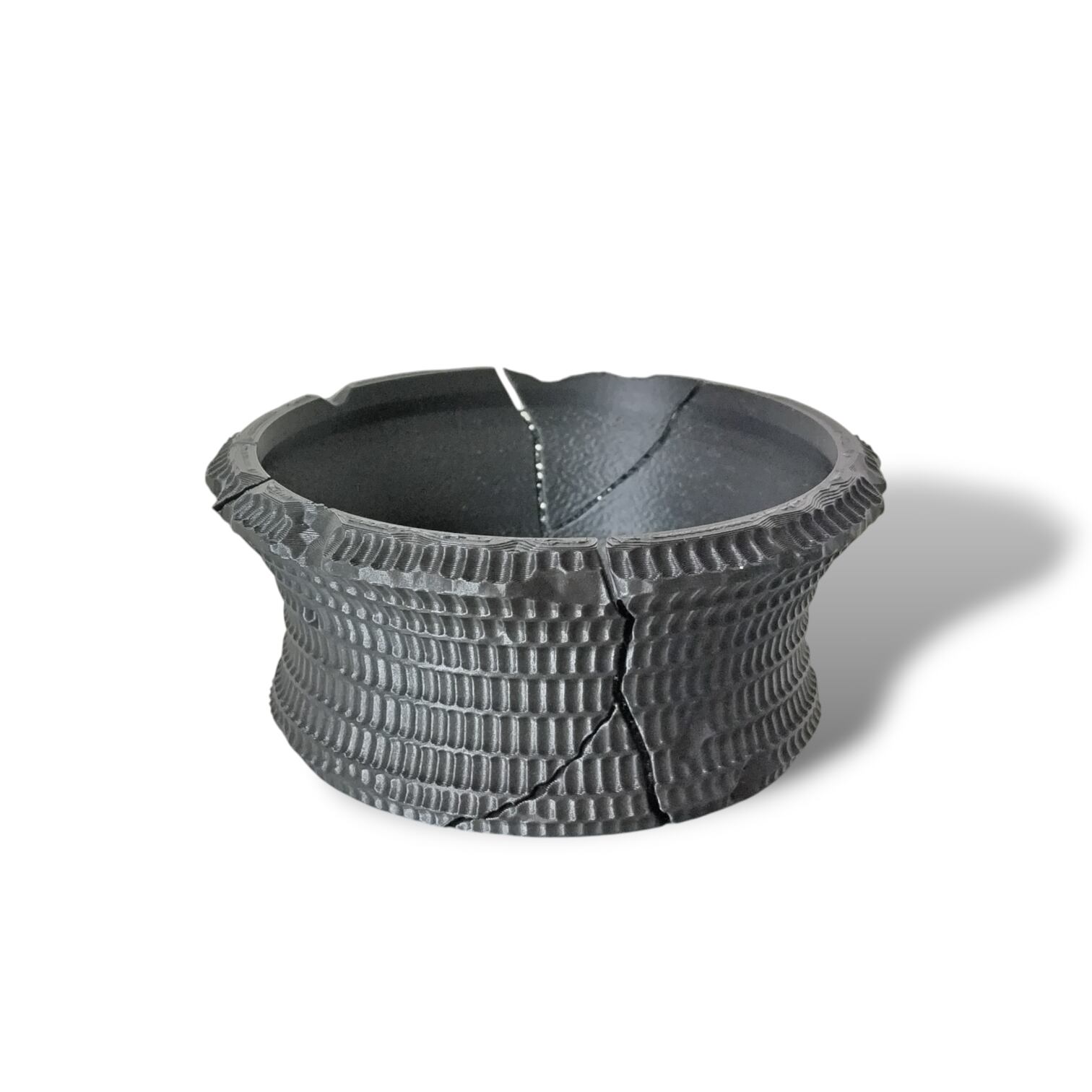 欠損と亀裂を帯びた鎬模様が特徴。ジャイロイド(3次元メッシュ)によって形成された亀裂と大きめの底穴によって強度、通気性、排水性を両立しました。塊根植物やアガベに加えて幅広い植物にあわせやすいシリーズとなります。